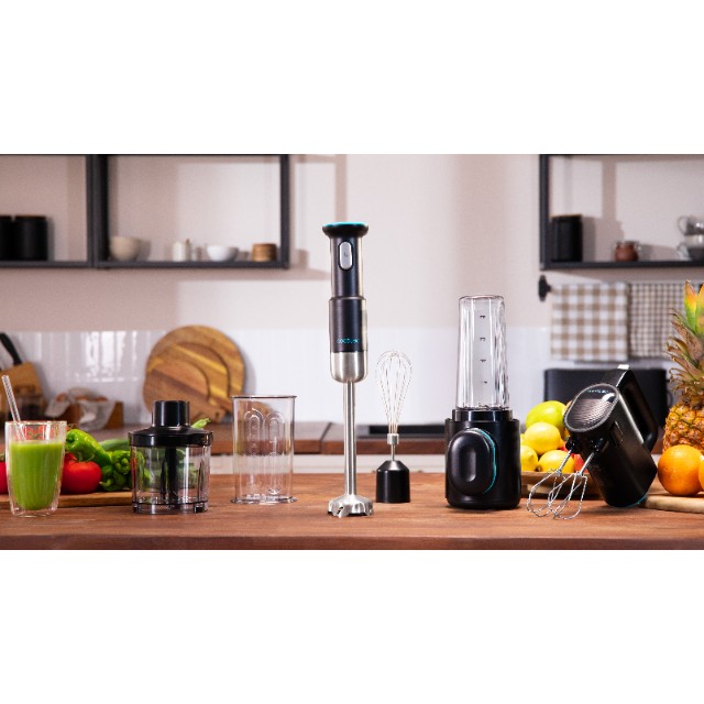 • 3 fonksiyonel cihaz seti (el blenderi, 500 ml bireysel blender ve 8 kademeli çırpıcı) ile çok yönlü karıştırma, doğrama ve çırpma işlemlerini tek pakette zahmetsizce yapabilirsiniz.